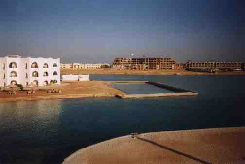 Bis vor einigen Jahren war dieses Hotel uneingeschränkt für Taucher und Schnorchler empfehlenswert. Gute geräumige Zimmer, prima Essen. Action am Pool aber Ruhe am Strand. Leider kamen dann im Lauf der Jahre das unmittelbar benachbarte Arabella und im Hinterhof des Arabia das Bel Air dazu. Weiter wurde das Arabia noch aufgestockt. Wenn also Kreutzer im Prospekt Winter 2001/02 behauptet, dass das Hotel aus zwei 2-stöckigen Wohnflügeln besteht so ist dies ein Irrtum. Inzwischen ist das Hotel 3-geschoßig. Durch diese Maßnahmen wurde das Platzangebot am Strand unseres Erachtens unzumutbar und der Erholungseffekt ist durch die dauerhafte Beschallung mit "Musik" auch im Strandbereich weg. Bild des 3-geschossigen Arabia mit umgebenden Baustellen Stand November 2000: