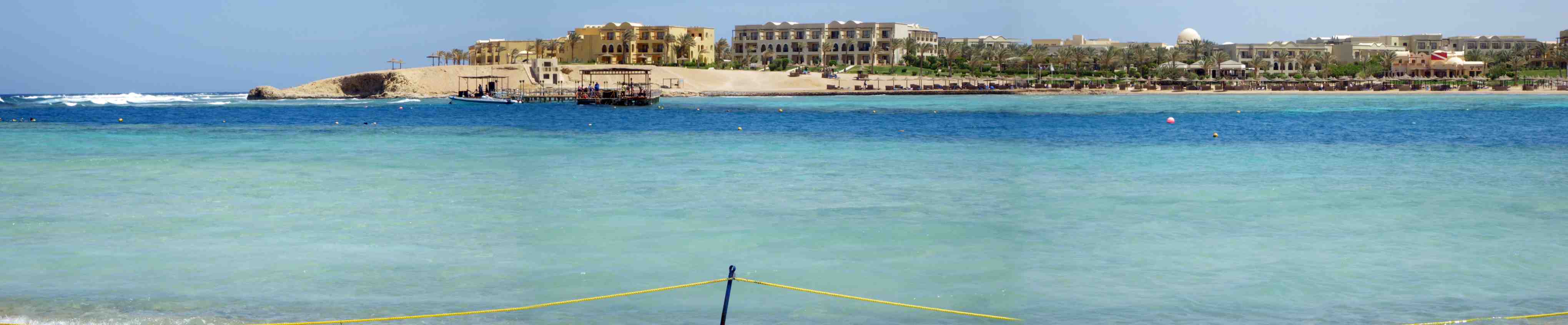 Das Hotel liegt nördlich einer der wenigen Buchten die das Saumriff unterbrechen. Durch die erhöht gebaute Hotelanlage hat man am Strand optimalen Windschutz - auch bei Sturm bei dem in anderen Hotels bereits der Sand fliegt und die rote Fahne flattert geht am Coraya-Strand nur ein sanftes Lüftchen. Bei den südlich der Bucht liegenden Hotels sieht das sicher anders aus.