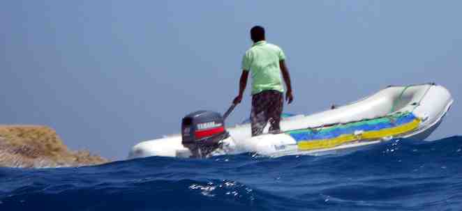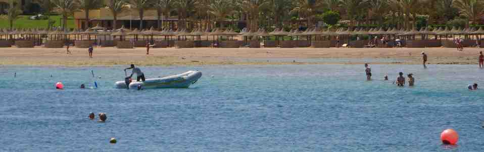 In der Bucht ist leider oft ein "Stehbootfahrer" unterwegs. Wenn er zwischen dem Steg und dem offenen Meer hin und her fährt um die Taucher abzusetzen ist das ja verständlich und man sieht sich vor, dass er nicht den Rücken perforiert. Auch wenn er bei jedem Wellengang noch steht, sieht er nicht wer vor ihm schnorchelt besonders weil er nur Vollgas kennt. Leider kommt er aber auch weiter in die Bucht herein, man ist nirgends sicher. Es ist mir absolut unverständlich, dass Taucher auch in 2 Meter tiefem Wasser abgesetzt werden müssen wo sie auch ohne Boot vom Steg aus problemlos hinkommen.