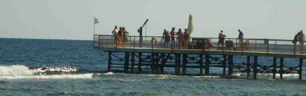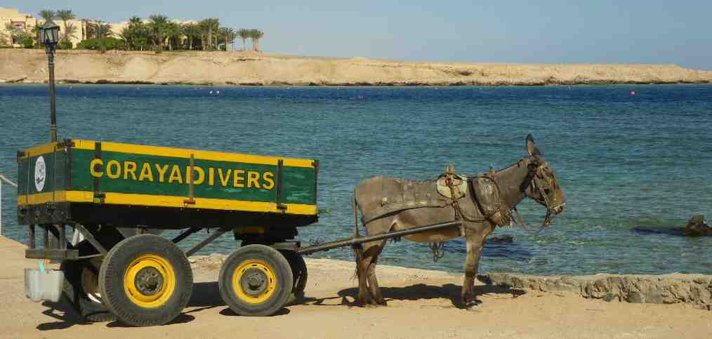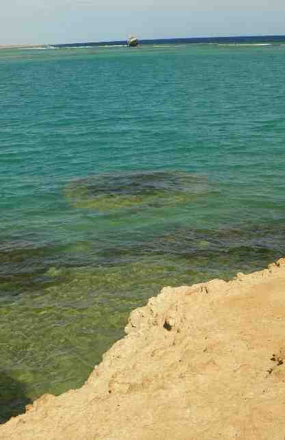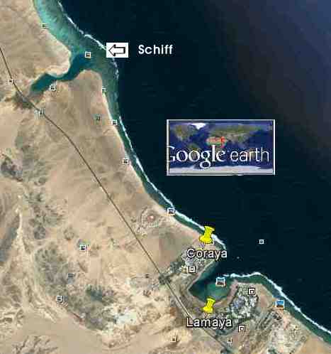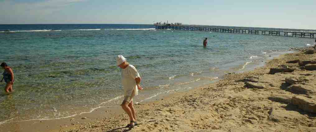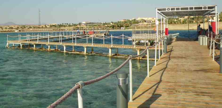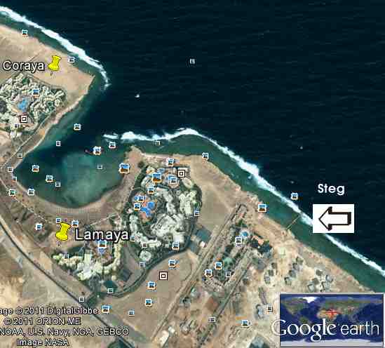 Als nächste Tour hat mich dann ein Schnorchelausflug von der Coraya Bucht zum südlich gelegenen Steg des Hotel Resta gereizt. Zunächst haben wir einen Ausflug zur Besichtigung über den Landweg gemacht und alles sah sehr schön aus. Die Leiter geht nicht wie gewöhnlich vor dem Steg ins Wasser, sondern an der Seite. Sie war also aus der Ferne nicht sichtbar.