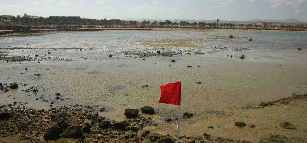 Dann hat aber leider der Wind einen Strich durch die Rechnung gemacht: Immer schwarze Fahne (gleichbedeutend mit der roten im Norden). Der Oberhammer ist dann noch, dass am südlichen Steg die Leiter hochgezogen wird, wenn die schwarze Fahne weht. Also bitte erst nach der Fahne sehen und dann um die Ecke schwimmen. Der Rückweg gegen die Strömung könnte sehr beschwerlich sein, genauso wie der Weg über das Korallendach bei Wellengang!