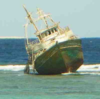 Die etwas niedrigeren Temperaturen haben dann doch, wenn der Wind nicht allzu sehr geblasen hat, zu kleinen Ausflügen in die Umgebung eingeladen. Das im Norden auf dem Riff liegende Schiff hat es uns schon die ganze Zeit angetan, es mal näher anzusehen. Leider sind wir nur fast bis dort hin gekommen, weil uns eine weitere Bucht den direkten Weg versperrt hat und wir nicht den Umweg über die Straße nehmen wollten. So sind wir auf der Südseite der Bucht geblieben und sind dann wieder umgekehrt.