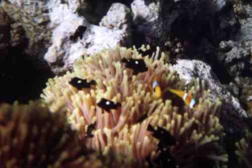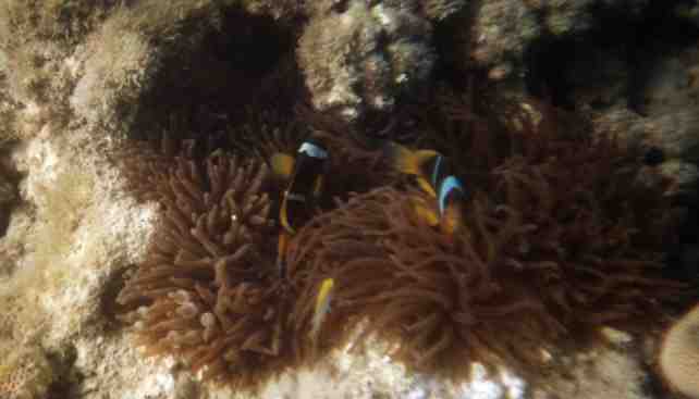 Besonders an dem vorgelagerten Riff nach links findet man eine Vielzahl verschiedener Anemonenfische