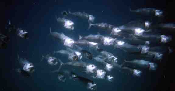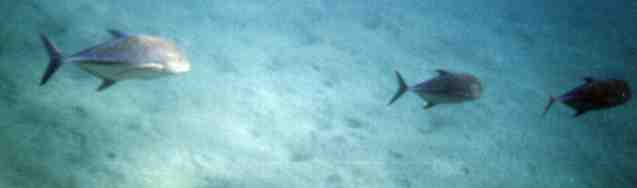 Das sieht so richtig gefährlich aus wenn sich einem ein Schwarm Großmaulmakrelen nähert.
