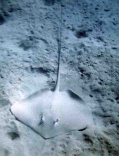 Leider ist mir der Gitarrenrochen wieder nicht so dicht vor die Kamera gekommen, dass das Bild etwas geworden wäre - dafür aber ein schöner Adlerrochen.