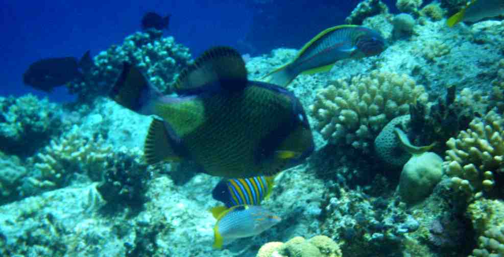 Nach dem Einstieg wird man gleich von einem Schwarm Fische begrüßt: