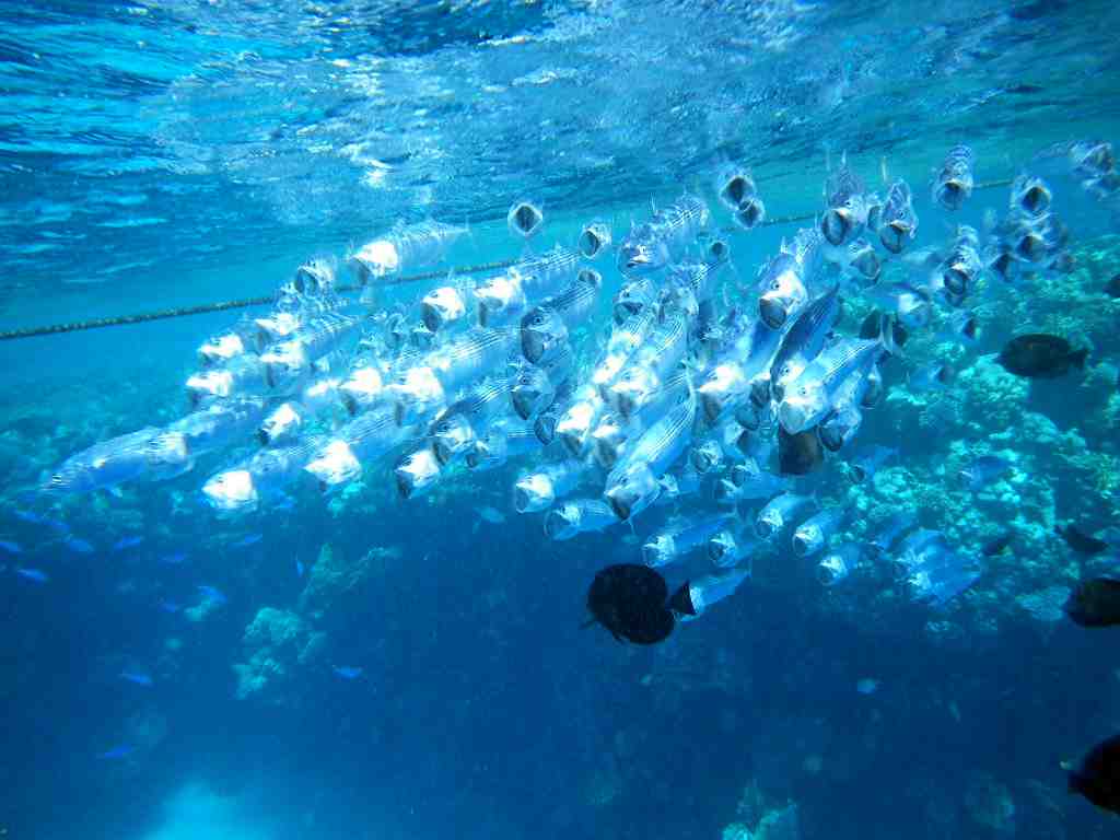 Immer wieder faszinierend wenn ein Schwarm Großmaulmakrelen auf einen zu kommt.