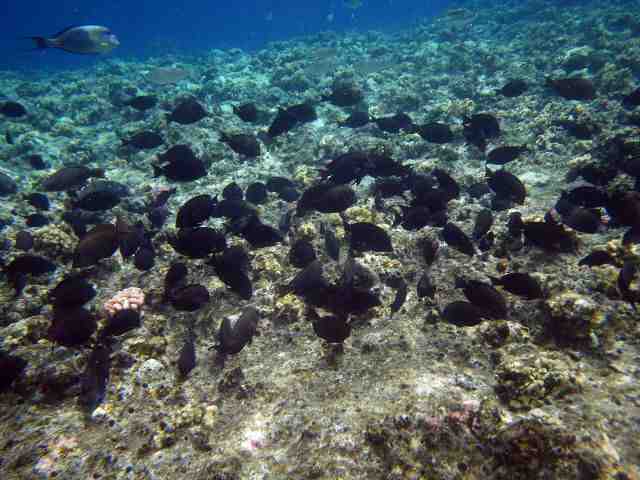 Sollte das doch kein Fisch sein? Ja, so sieht es wirklich meist in so 5 Meter Tiefe in der Bucht aus. Dass man dafür teures Geld für Tauchgänge ausgeben kann ist mir doch etwas unbegreiflich!