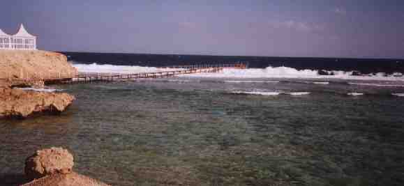 Leider stellte sich aber die Dünung als meist unüberwindliches Hindernis heraus. Der Steg war häufig "gesperrt" und die Leiter nur für Extremsportler geeignet, wieder aus dem Wasser zu kommen. Im Wellental war die unterste Sprosse der Leiter nicht mehr im Wasser, mit dem Wellenberg wurde man doch recht stark an die Leiter gepresst (einige blaue Flecke zeugen noch davon). Das Überschwimmen der Riffkante erschien bei dem Wellengang als nicht sehr empfehlenswert. Auch ein Loch in der Riffkante konnte wegen stets ablandiger Strömung nur mit Problemen genutzt werden da das dort liegende Seil wegen schlecht gewarteter Bojen erst ertaucht werden musste. Am Hotelstrand war stets die rote Flagge aufgezogen: Baden verboten! Erst auf massiven Protest wurde die Fahne bei Windstille zwei Tage auf gelb (baden auf eigene Gefahr) geändert. Die grüne Fahne gibt es wohl zur Zeit nicht (oder ist der bodygebuildete Strandwärter vielleicht mit dem Beglücken einsam reisender Damen überlastet?).