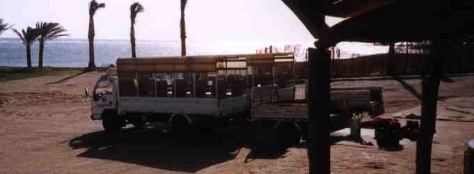 Tauchen: Etwas antiquiertes stark gewinnorientiertes Tauchcenter im Hotel. Transfer zum Schiff zunächst im LKW dann mit Schlauchboot ins Schiff. Kein eigener Hafen. Sehr schöne Tauchgänge auch direkt vom "Outdoor Beach" ohne Schiffstransfer. Relativ unberührte Unterwasserwelt. Preisgestaltung etwas unübersichtlich, Preisliste wird nur auf Verlangen gezeigt, Bundle-Angebote werden zurückgehalten ... erst das Tauchermesser in den Tisch! Ausleihen von Flaschen zum direkten Einstieg vor dem Tauchcenter (wäre gut möglich) wird nicht geduldet. Der Ausflug zum Delphin-House ist unbedingt empfehlenswert! Hier der Taucherexpress (nur eine Dampflok wäre noch nostalgischer):