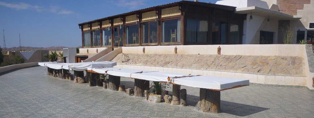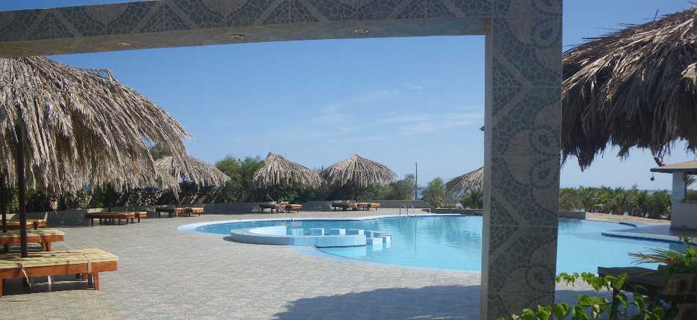 Ja, ein Beduinenzelt für die abendliche Unterhaltung gibt es auch. Was darin aber vorgeht wissen wir nicht da es immer noch nicht geöffnet war als wir schon müde waren. Jemand hat dann auch noch mit viel Mühe Volleyballfelder am Strand aufgezeichnet und planiert, nur spielen wollte keiner. Das Hotel ist also ausschließlich für Ruhe suchende Gäste. Keine Musikberieselung am Strand oder sonst irgendwo. Nur leise nicht störende Musik beim Frühstück. Keine Animation, auch nicht versuchsweise.