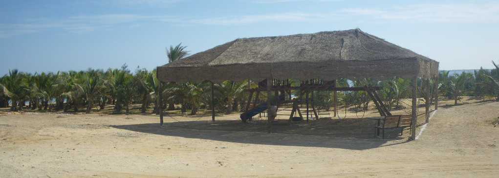 Auch einen abgeschatteten Kinderspielplatz gibt es nur Kinder haben wir kaum einmal gesehen: